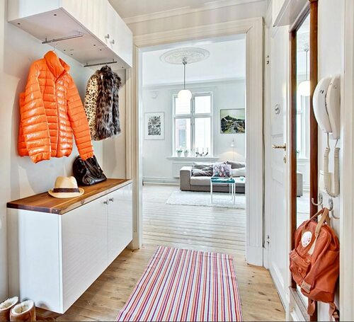 Выбирайте компактную мебель, которая не займет много места, но при этом будет функциональной. Например, вместо большого шкафа для верхней одежды можно использовать вешалку с полками для обуви.