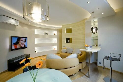 1. Гостиная: В гостиной вы можете использовать потолочные светильники для общего освещения комнаты, настольные лампы для чтения или работы за столом, а также подсветку для создания акцентов на декоративных элементах.