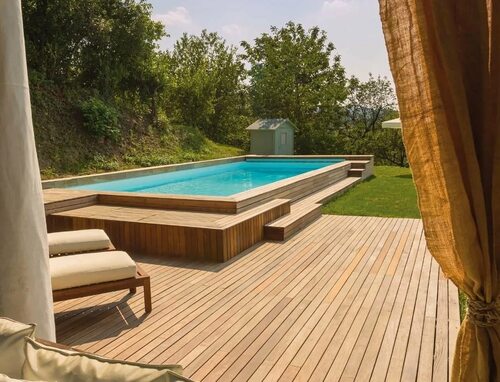 При выборе материалов и отделки для бассейна на террасе учтите, что они должны быть прочными, устойчивыми к влаге и солнечным лучам. Распространенными вариантами являются керамическая плитка, натуральный камень или специальные покрытия для бассейнов. Также обратите внимание на дополнительные элементы, такие как облицовка бортиков и декоративные элементы, которые помогут создать уютную и стильную обстановку.