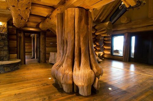 4. Внутренняя отделка. Внутри дома из бревна большого диаметра можно оставить его естественный вид или произвести внутреннюю отделку по желанию.