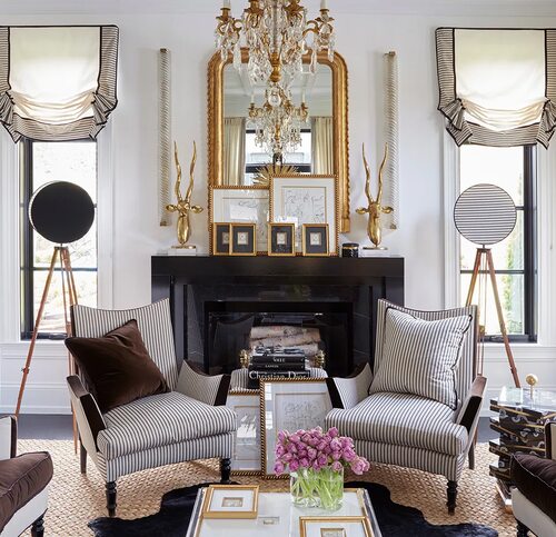 Французский шик в интерьере не обходится без декоративных элементов. Важными акцентами являются зеркала с позолоченной рамой, кристальные люстры, мраморные столешницы и антикварные предметы. Фрески на стенах или потолках, а также декоративные молдинги и резьба в виде цветов и лилий – это все характерные черты французского шика.