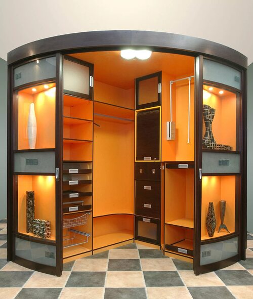 5. Угловые гардеробные комнаты с оригинальными решениями