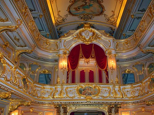 Особое внимание заслуживает театральный зал дворца, который считается одним из самых красивых в Санкт-Петербурге. Здесь проводились представления для знати, а его интерьер восхищает своими роскошными деталями.