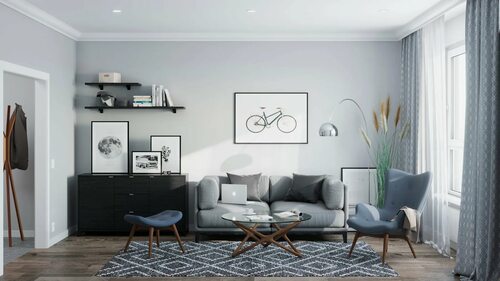 Фото 1: [Вставить фотографию скандинавского интерьера с серыми стенами]