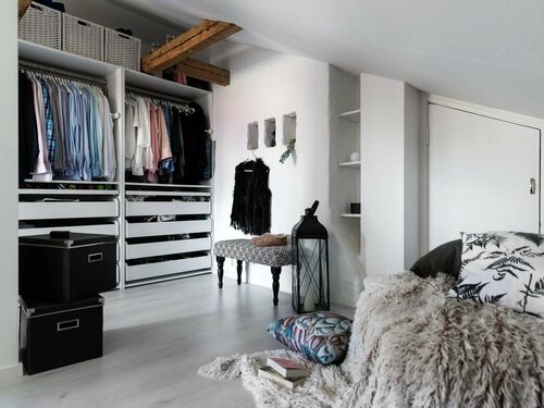 Используйте ящики и полки, чтобы организовать хранение различных вещей в гардеробной. Это поможет вам удобно разместить их и держать все в порядке.