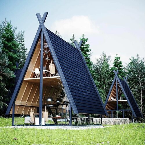 Если вы ищете идеальное место для отдыха на природе, то дом с треугольной крышей может стать отличным вариантом. В данном проекте представлен дом, расположенный в окружении природы, с большими окнами и просторной террасой. Этот дом позволит вам насладиться красотой природы и отдохнуть от городской суеты.