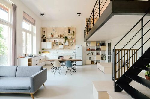 Лофт-стиль идеально подходит для квартиры с высокими потолками. Открытые коммуникации, кирпичные стены и металлические элементы создадут атмосферу индустриального шарма.