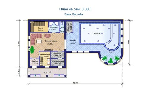 Если вы хотите, чтобы сауна и бассейн были более органично вписаны в общую композицию вашей дачи, интегрированная планировка может быть идеальным решением. Здесь сауна и бассейн объединены в единое пространство с использованием единого стиля и материалов. Это создает гармоничный и естественный вид, который отлично сочетается с окружающей природой и архитектурой.