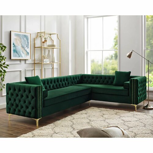 1. Уникальный дизайн: изумрудный цвет подчеркивает изысканность и роскошь дивана, делая его привлекательным элементом интерьера.