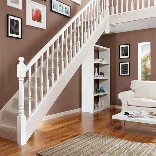 Белая отделка лестницы позволяет легко удалять пыль и грязь, что облегчает уход за ней. Деревянные ступени также могут быть обработаны специальными средствами для защиты от повреждений и сохранения их первоначального вида.