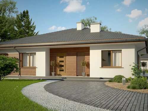 Этот проект представляет собой одноэтажный дом с террасой и ухоженным садом. Терраса служит местом для отдыха и проведения времени на свежем воздухе, а сад является украшением и природным уголком прямо у дома. Дом имеет просторные гостиные и спальные комнаты, а также функциональную кухню. Этот проект идеально подходит для тех, кто ценит природу и хочет создать свой уютный уголок в окружении зелени.