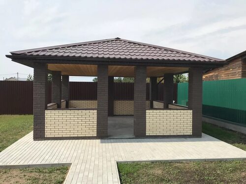 Для вдохновения предлагаем вам посмотреть фотографии кирпичных беседок: