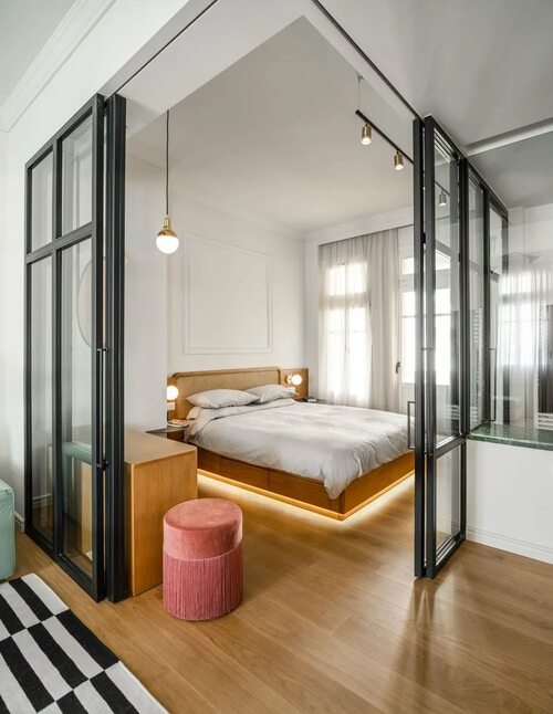 Идеи дизайна спальни за стеклянной перегородкой