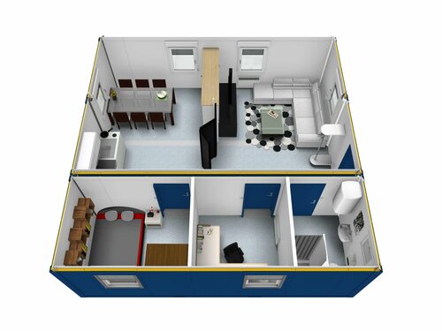 Используйте несколько бытовок, чтобы создать семейный дом. Разделите их на отдельные комнаты - спальни, гостиные, кухню. Таким образом, у каждого члена семьи будет свое пространство, но вы все же будете жить вместе.