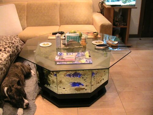 - Столик аквариум - отличный способ привнести природу в ваш дом, особенно если у вас нет возможности иметь большой аквариум.