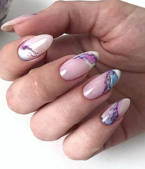 Мраморный маникюр с разводами - это одна из самых изысканных и элегантных техник декорирования ногтей. Он создает эффект мраморной текстуры, придавая ногтям благородный и шикарный вид. Чтобы создать мраморный маникюр, вы можете использовать несколько оттенков одного цвета или комбинировать различные цвета, чтобы создать яркий и контрастный дизайн. Фотографии мраморного маникюра с разводами представлены ниже:
