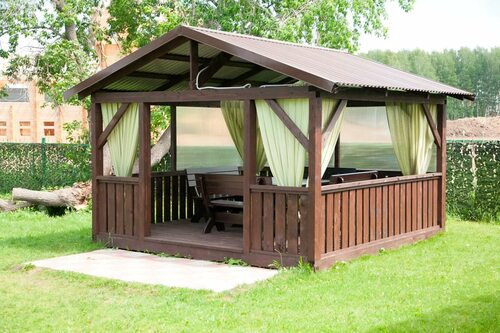 Конструкция беседки может быть простой и легкой, чтобы упростить и удешевить процесс строительства. Вы можете выбрать крышу из поликарбоната или тентовую крышу, которые также являются бюджетными вариантами. Важно учесть, что конструкция должна быть стабильной и безопасной.
