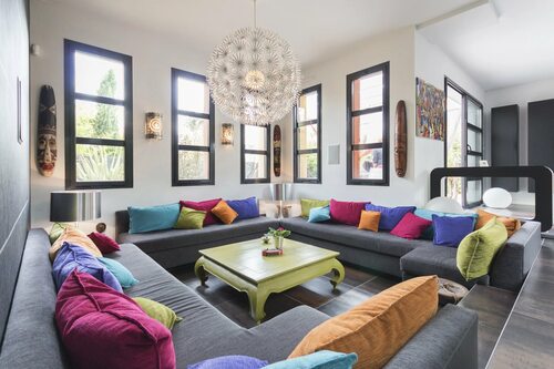 Если вы предпочитаете более сдержанный стиль, сочетайте яркий диван с нейтральными цветами. Серый, бежевый, белый или коричневый - такие тона подойдут для стен, пола и других элементов интерьера. Яркий диван станет прекрасным акцентом, который добавит жизни и энергии в ваш серый интерьер.
