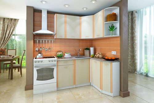 2. Угловой гарнитур с встроенными полками