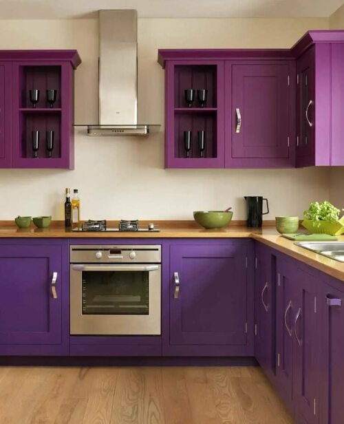 Варианты кухонных гарнитуров в сиреневом цвете