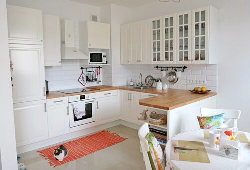 Столешница должна быть изготовлена из натуральных материалов, таких как дерево или камень, чтобы создать ощущение природного тепла и комфорта. Шкафы и полки могут быть выполнены в светлых тонах, таких как белый или светло-серый, чтобы создать визуальное пространство и добавить воздушности кухне. Освещение должно быть ярким и естественным, использование больших окон и светильников с мягким светом поможет создать атмосферу уюта.