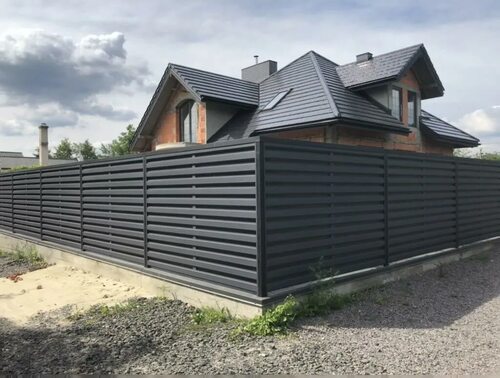 Дизайн забора из черного профнастила