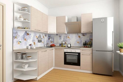 Вариант 3: Угловой гарнитур с встроенной техникой