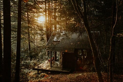 Изображение домика в лесу позволяет проникнуться природной красотой и спокойствием. Вы сможете наслаждаться видом леса и ощущать его присутствие даже в городской квартире.