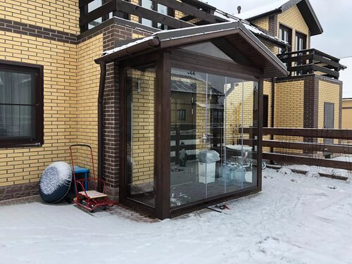 Ниже представлены фотографии различных дизайнерских решений закрытых крыльцо в частном доме: