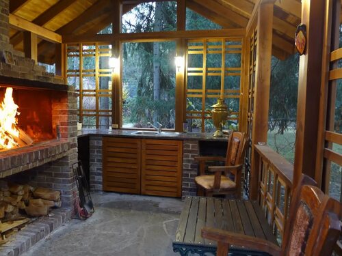 Здесь представлены вдохновляющие фотографии зимних беседок с камином: