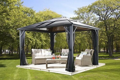 Металлические беседки становятся все более популярными благодаря своей прочности и долговечности. Они не требуют особого ухода и могут быть выполнены в различных стилях. Однако, следует учесть, что металл может нагреваться на солнце, поэтому необходимо предусмотреть защиту от перегрева.