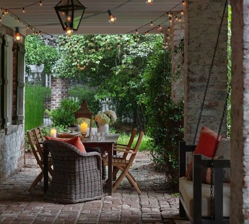 Для создания уютной атмосферы в зоне патио в стиле Прованс необходимо не забывать о подсветке. Используйте мягкое и рассеянное освещение, чтобы создать романтическую атмосферу вечернего сумеречного времени.