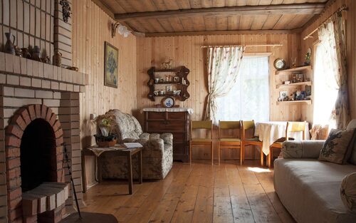 Чтобы создать аутентичный интерьер деревенского дома с печкой, используйте природные материалы, такие как камень, кирпич, глина и льняные ткани. Эти материалы придают ощущение естественности и прочности, а также гармонично сочетаются с деревянными элементами.