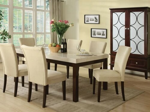 Рустик стиль создает атмосферу уюта и тепла. Выберите деревянный стол с натуральной отделкой, добавьте текстильные скатерти и декоративные элементы из натуральных материалов. Этот стиль идеально впишется в загородный дом или коттедж.