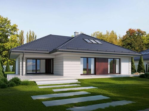 Одноэтажный дом с панорамными окнами - это современное решение, которое позволяет создать уютное и комфортное жилье с великолепным видом на окружающую природу. Панорамные окна позволяют максимально использовать естественное освещение, что делает пространство светлым и привлекательным.