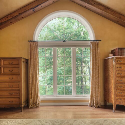 Этот вариант предусматривает арку в верхней части окна, создавая изящную и элегантную форму. Такие окна часто выбирают для помещений с высокими потолками, чтобы подчеркнуть их величественность и добавить атмосферу роскоши.