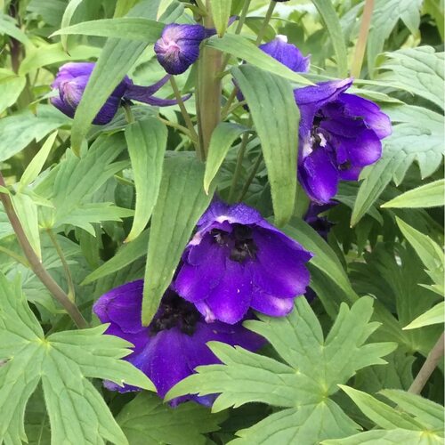 Дельфиниум голубая бабочка имеет высоту до 1,5 метра и великолепные вертикальные соцветия, состоящие из множества голубых цветков. Листья дельфиниума имеют сердцевидную форму и обладают насыщенным зеленым цветом, что создает красивый контраст с голубыми цветами.