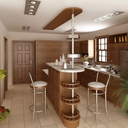 Барные стойки предоставляют дополнительное рабочее пространство, которое может использоваться для приготовления пищи или размещения кухонной техники. Это особенно удобно, если на кухне работает несколько человек одновременно.