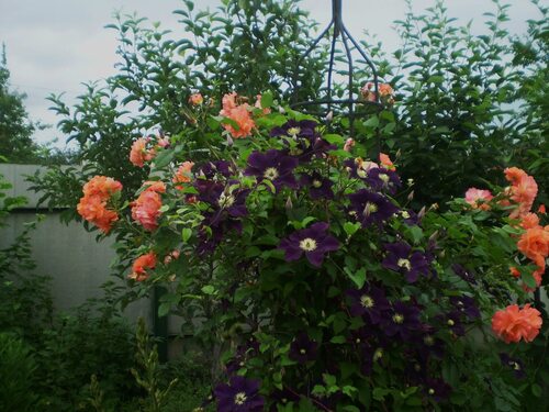 Сначала посадите плетистую розу, выберите для нее опору, на которую она будет взбираться. Затем посадите клематис рядом с розой и обеспечьте ему поддержку для взбирания.