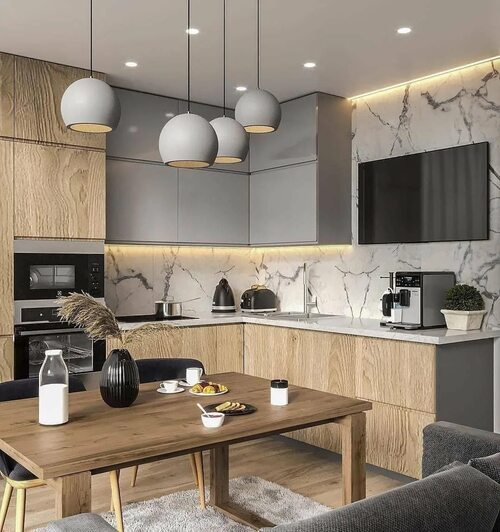 В современных кухонных гарнитурах все большую популярность набирают натуральные материалы, такие как дерево, камень и металл. Они придают интерьеру ощущение природной теплоты и уюта. Комбинирование разных текстур и оттенков создает интересные акценты и добавляет глубину в дизайн кухонных гарнитуров.