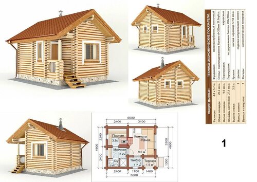 Вот несколько фотографий, которые помогут вам визуализировать проект бани 6х4 с террасой из бревна: