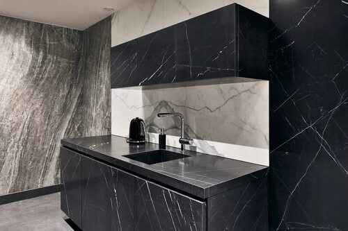 4. Универсальность: черный мрамор отлично сочетается с различными стилями интерьера. Он может быть использован как в современных минималистических кухнях, так и в классическом или ретро стиле.