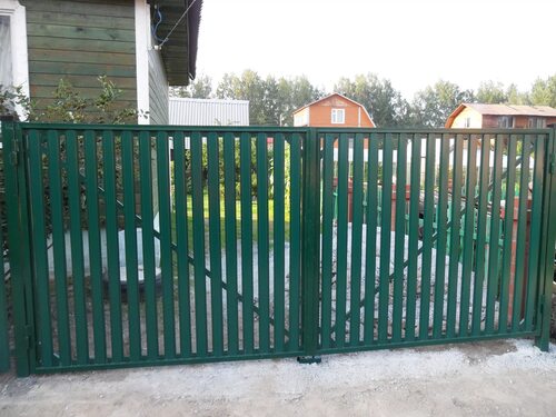 [Вставить фотографии распашных ворот из металлического штакетника]