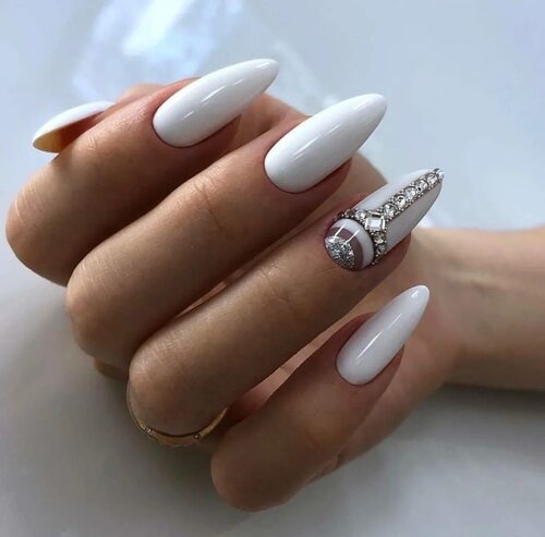 Теперь перейдем к созданию белого маникюра на миндалевидных ногтях. Следуйте этим шагам:
