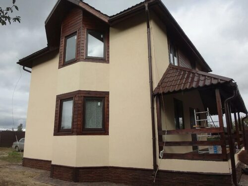 2. Защита от погодных условий: такая штукатурка обладает высокими водоотталкивающими и воздухопроницаемыми свойствами, что позволяет защитить фасад дома от влаги, снега, солнечных лучей и других неблагоприятных факторов.