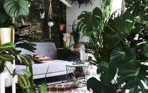 Повесьте растения в висячих горшках с потолка или над окнами. Это создаст эффект плавающих джунглей и добавит воздушности в интерьер.