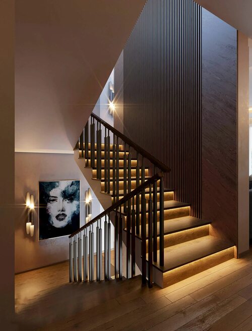 Лестницы в современном стиле отличаются лаконичным и минималистичным дизайном. Они используют современные материалы, такие как стекло и металл, и могут стать главным акцентом в интерьере вашего таунхауса.