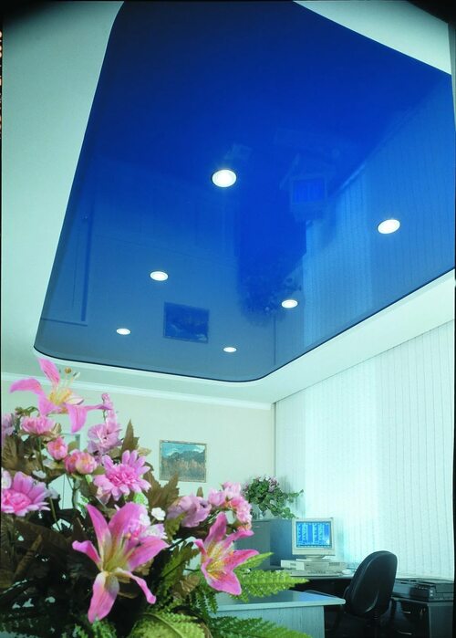 Преимущества натяжных потолков синего цвета
