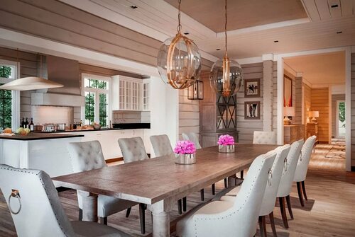 Кухня в загородном доме должна быть не только красивой, но и функциональной. Планируйте пространство таким образом, чтобы все необходимые элементы были удобно расположены и легко доступны. Помните о правиле "рабочего треугольника": расстояние между рабочей зоной, холодильником и плитой должно быть минимальным.