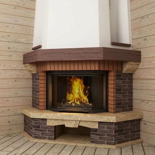 1. Классический кирпичный угловой камин